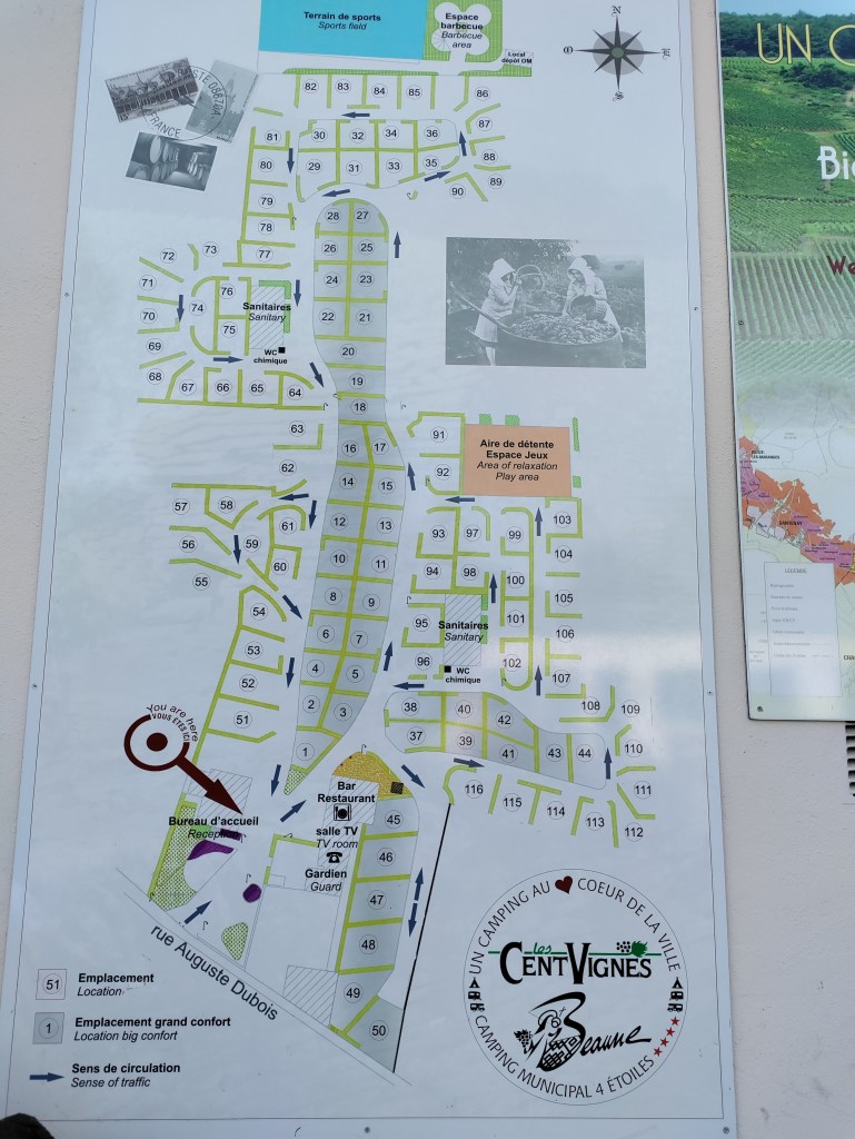 Most of the campsites we’ve visited so far have clearly been mostly catering for the many campervans and caravans that fill most of the sites. Many number plates from France, but also many from Germany, the Netherlands and Belgium (even though we’re quite far from the borders still), and a handful from the UK, Swiss and Italy.