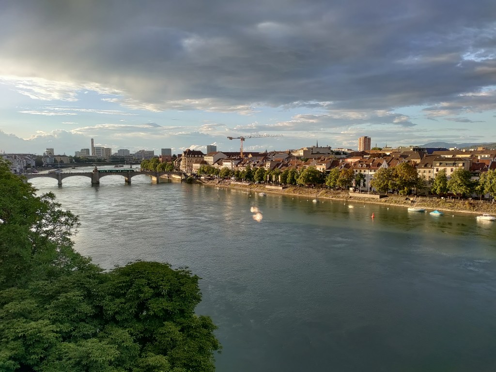 We were left scratching our heads and accessing that part of our memories when we did travel before smart phone even existed. Our campsite was in a suburb of Basel with a train station. We found the train station by following signs and then on arrival we had to figure out which train to get. There were 2 options, the fast and slow option. The fast option involved going in the opposite direction of Basel to another town and changing platforms – the slow option involved staying at our current location for 28minutes. We decided to go for the fast option, got on the correct train, but didn’t clock how many stops it was to the station where we changed platforms. So we got off at the first stop, which we thought was the correct one, only to realise that we should have stayed on for another stop. This meant that we had to wait for the slow train in the end. Although it was okay – I had downloaded my book onto my phone by this point – we sat on the platform, I read and Robin chilled out by playing games on his phone. We arrived in Basel at 19:40 instead of 19:20.